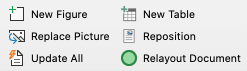 Restart Microsoft Word, and go to the Layout tab. There should be a new tab group containing six items, starting New Figure and New Table, as shown here.
